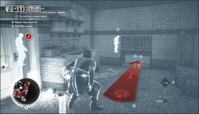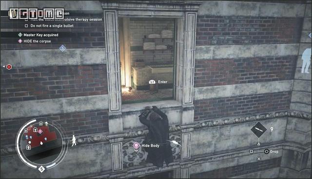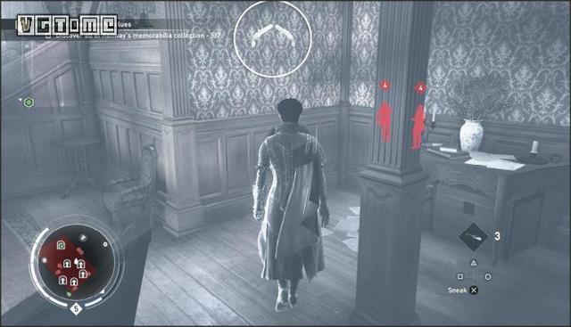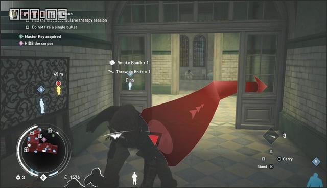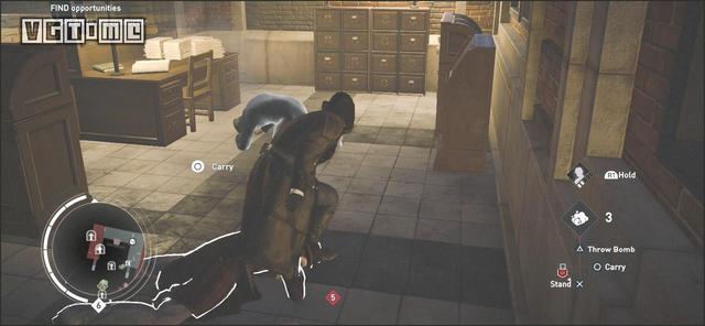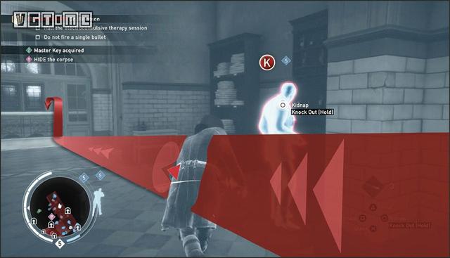 要完成这一挑战,必须保证所有人都是用毒气杀死的,这意味着你不能亲手杀死任何一名守卫。这里的要点是多使用勒晕,操作方法是未被发现的情况下在敌人背后长按O/B。这一招跟绑架很像,但会将敌人勒得更紧,直至晕厥。是的,只是昏厥,不算死亡。