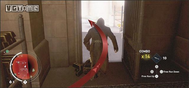 想要以最快的速度来到屋顶,玩家可以寻找一下墙边的吊车装置,并跑过去摁住R2/RT+×/A。通过吊车不仅能够快速逃脱敌人的追捕,吊车落下的秤锤也会砸死下面的敌人。