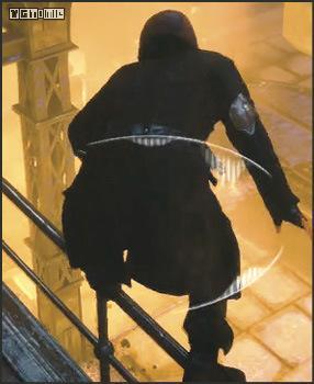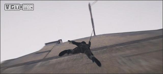 在高处的突出物上,按L1/LB可以放出绳索,在绳索上来到敌人上方,则可以空中刺杀。