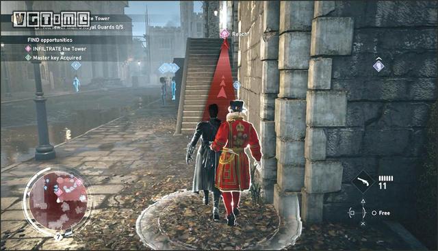 在整个任务中都要尽量避免被标识为蓝色的皇家守卫发现