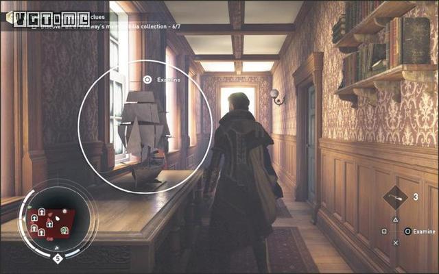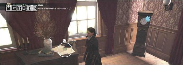 3.书镇:在两扇窗户之间的桌上,旁边的拐角处有一落地钟,桌上的玻璃方块就是我们需要的目标。
