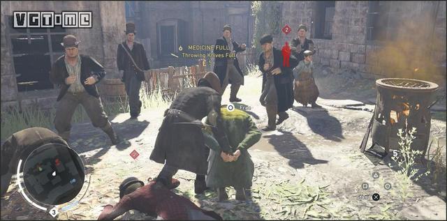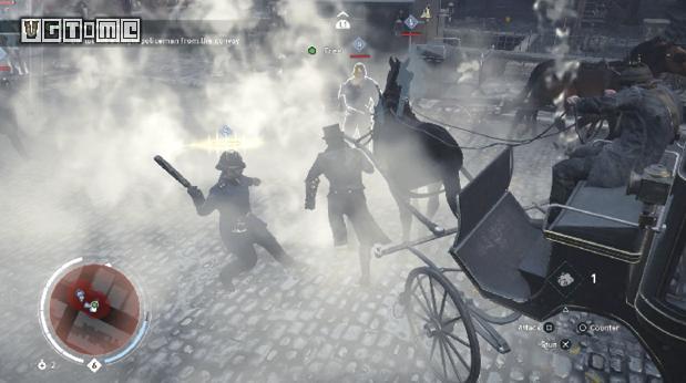 所说年少气盛,但是本次游戏的两个主角动不动就插眼踢裆实在有失刺客风范,尤其姐姐伊薇,在战斗中总是时不时就来上一招“猴子偷桃”。(这这...成何体统啊)本作的战斗感觉与《蝙蝠侠》、《疯狂麦克斯》等作品类似,打斗中当敌人头上的标识变为黄色后,即可按下○/B进行反击,熟练掌握反击后基本可以立于不败之地。不过在低等级阶段,战斗中玩家的反击有失败的可能,所以一味龟缩等待反击也不是最周全的打法。
