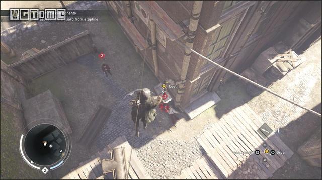 挑战2:从滑索上空中刺杀一个守卫
