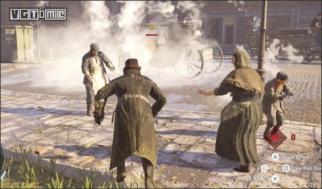 批发商回来后会发现自己的马车不见了,在他调查车夫尸体时扔出烟雾弹,冲到他身边,保持在他背后,长按O/B,直到偷窃成功。重要信息到手之后就算完成挑战了,之后是杀了他还是就此扬长而去就看你高兴了。