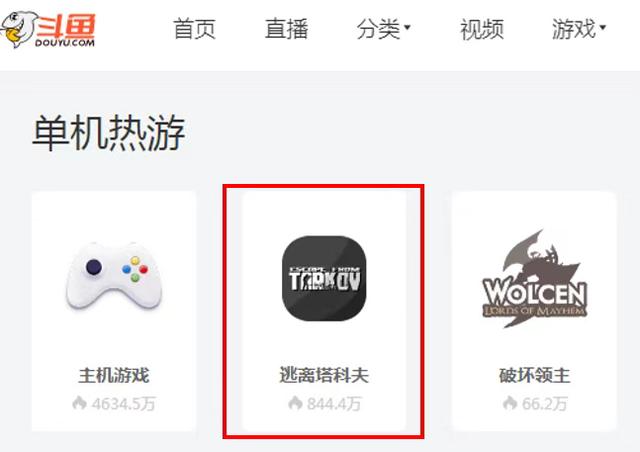 《逃离塔科夫》斗鱼单机热门游戏第一