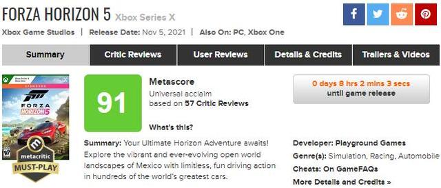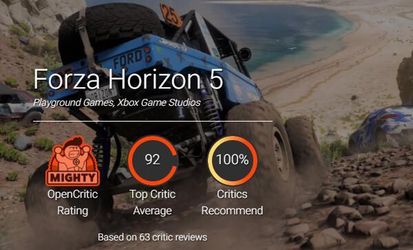 《极限竞速:地平线5》媒体评分现已解禁。截至撰稿时,Metacritic 收录媒体评测 57 份,评分为 91(XSX 版);Opencritic 收录媒体评测 63 份,评分为 92,推荐率 100%。本作将在 11 月 9 日解锁,登陆 XSX|X、Xbox One、PC,首发入库 XGP,支持中文。豪华版玩家还可以从 11 月 5 日开始提前体验。