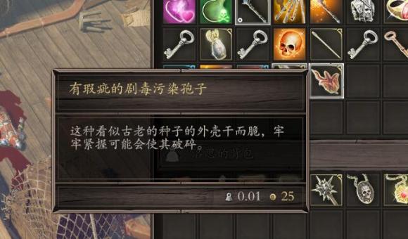 2.上船之后能摸到一个新道具孢子,同时解锁第一条神器线索。同时船上还有一本书,写着一共有5个孢子。