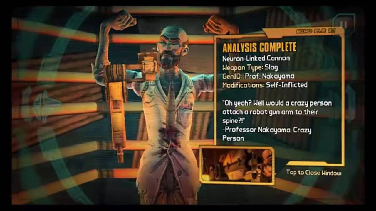 第二个boss就是Professor Nakayama,他是来自无主之地2的一个boss,无主之地2作为欧美十分流行的刷宝类的FPS游戏,在游戏中玩家会合作打败各种获得强力的装备。而这个boss作为无主之地2的DLC的角色,的确有boss的威严和血条。但就在玩家以为要经历一场恶战的时候,发现boss被剧情杀了,从楼梯上摔死了,玩家还能美滋滋的领取奖励。