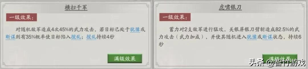 甘宁携带这两个技能,配合诸葛亮的武技加持,能打出高额的暴击伤害。同时,这两个武技还会让敌人随机陷入搅乱、犹豫和断谋状态里,使敌军长时间处于被控的状态中,增大我军的输出空间。