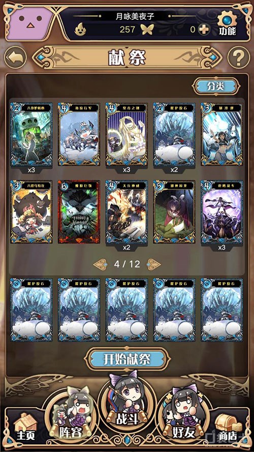 玩家可在阵容选项内进入献祭界面,消耗掉自己多余或者暂时用不上的卡,来随机获得一张卡。