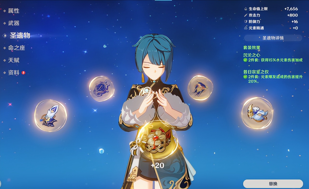 主词条,攻击/充能沙漏,水伤杯,暴击率。