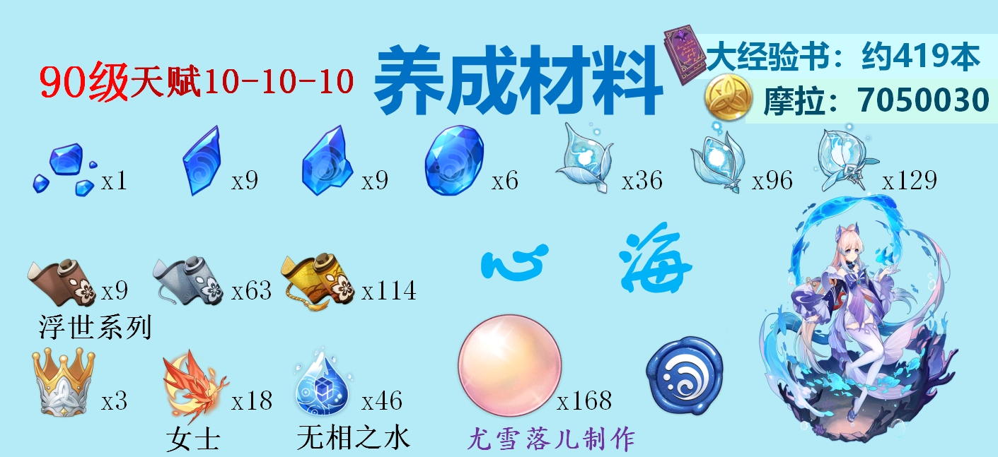 心海是一位拥有出色治疗能力的辅助型角色,突破需要珊瑚珍珠、排异之露、浮游干核、浮世系列天赋书、狱火之蝶等材料。