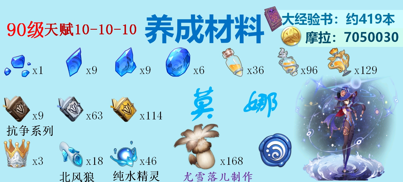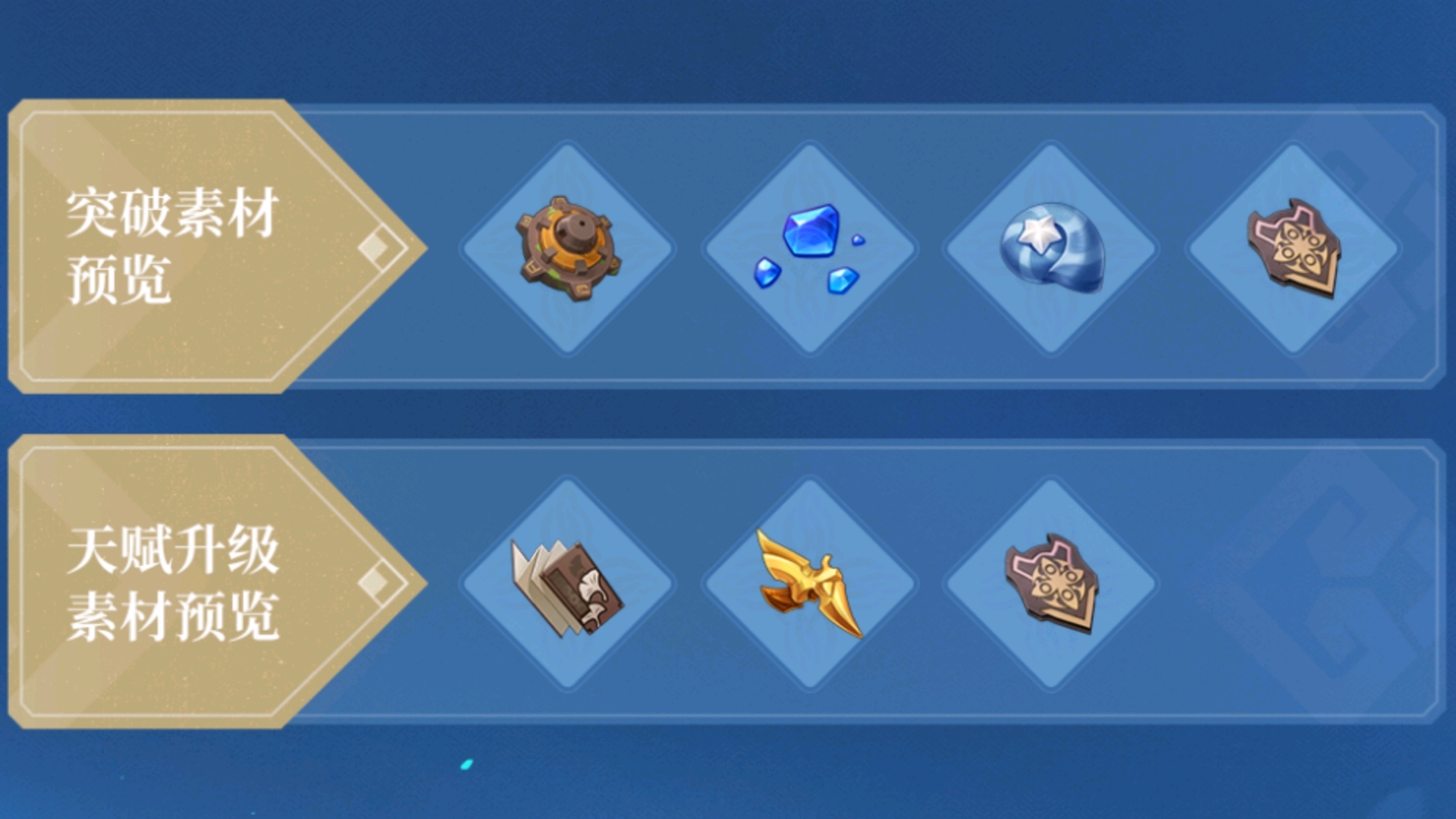 莫娜是一名以辅助见长的水系五星角色,其突破需要抗争系列天赋书、花蜜、北风之环等材料。