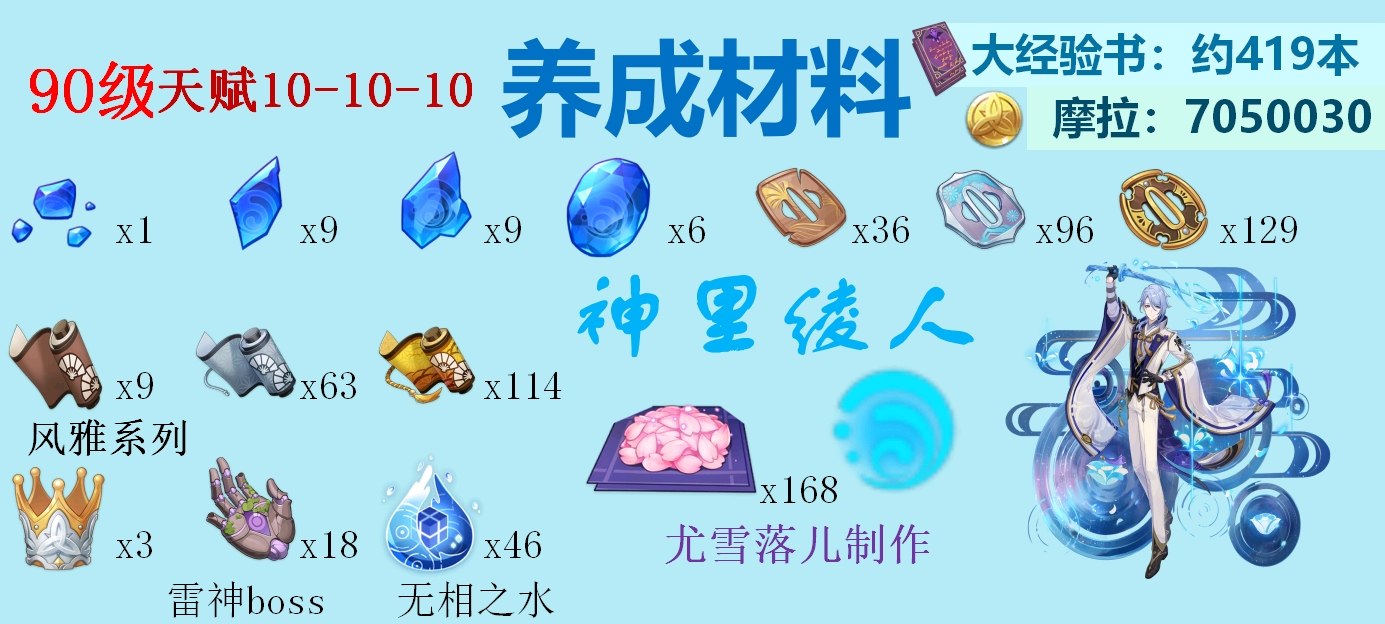 神里绫人是一位周期输出型角色,需要刀镡、绯樱绣球、风雅系列天赋书、无相之水掉落的排异之露等突破材料。