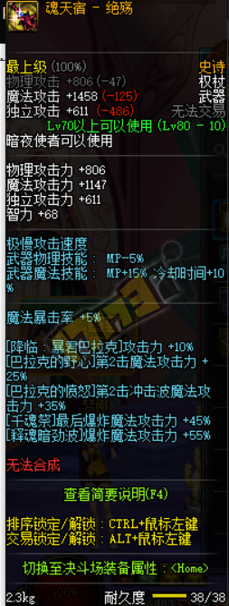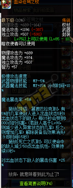 这两把武器都是属性非常优秀的传说,血染效果为翻译错误,实际上为开启暴君巴拉克时即加25%暴击伤害,释魂有着16%的白字加成和12%的魔爆,具体使用哪把武器要根据自己的装备搭配。