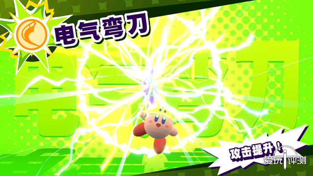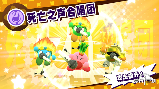 比如说超能力卡比虽然外形没有明显变化,但是却拥有更强大的瞬间防御判定,能使用瞬间移动或者施法自由移动的念力球;麦克风卡比则像是拥有胖虎歌声的哆啦A梦,一边掏出扩音器,一边用自己的“天籁之声”完成清屏作业。