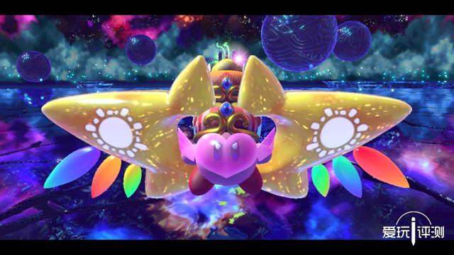 所幸连续的多场激战配合不断升级的BOSS形态让我们感到足够过瘾,更是重新使用了类似《星之卡比64》和《机械行星》那样改变战斗模式的手法,强调了脚本化的演出效果,烘托出《卡比》系列此前少有的史诗决战味道。