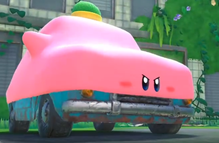 最被忠实粉丝所称道的核心玩法——吸入敌人后复制其能力,也在立足于现实世界的新作中迎来了更具想象力的进化——这一次,卡比可以吞汽车、吞自动售货机、吞三角锥等一切它实际上吞不下去的东西,但它可以利用这些道具帮助自己顺利通关,比如吞汽车以加速赛跑,吞自动售货机以吐出饮料攻击、吞三角锥以击破地面......