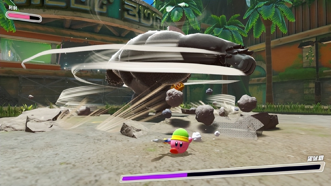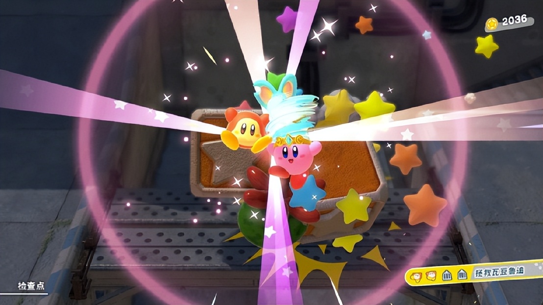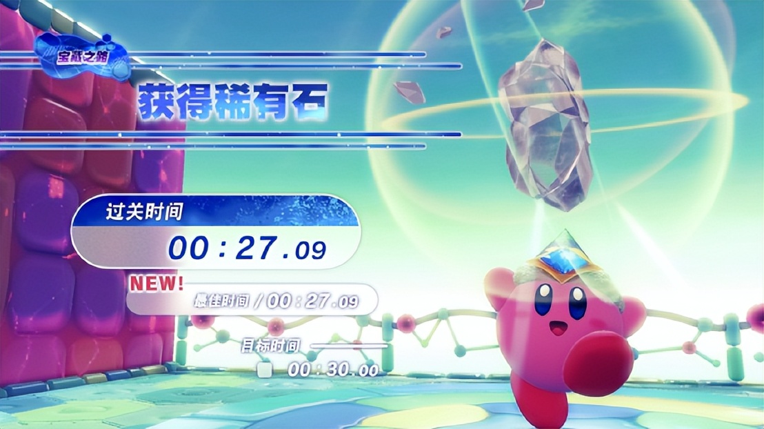 例如,在主线关卡外游戏中还有许多小关卡,每关都可以获得一颗稀有石,用于升级卡比的能力。