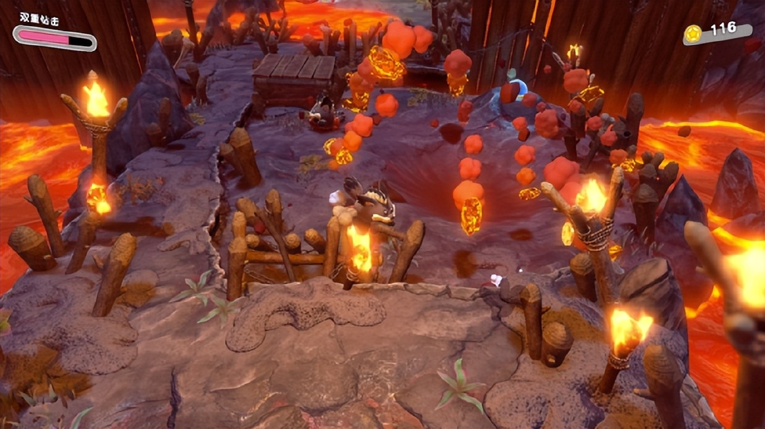 这个问题在使用火焰能力的时候更加明显。卡比头上是火,吐出的攻击也是火,怪物烧着了身上也有火,场面会显得很混乱,有时打着打着自己就掉下去了。