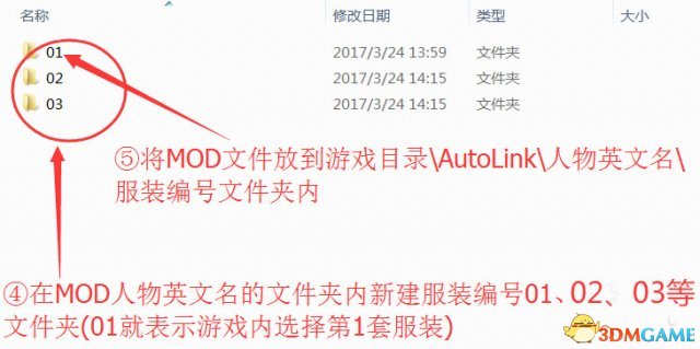 5.将MOD文件放到游戏目录AutoLink人物英文名服装编号文件夹内