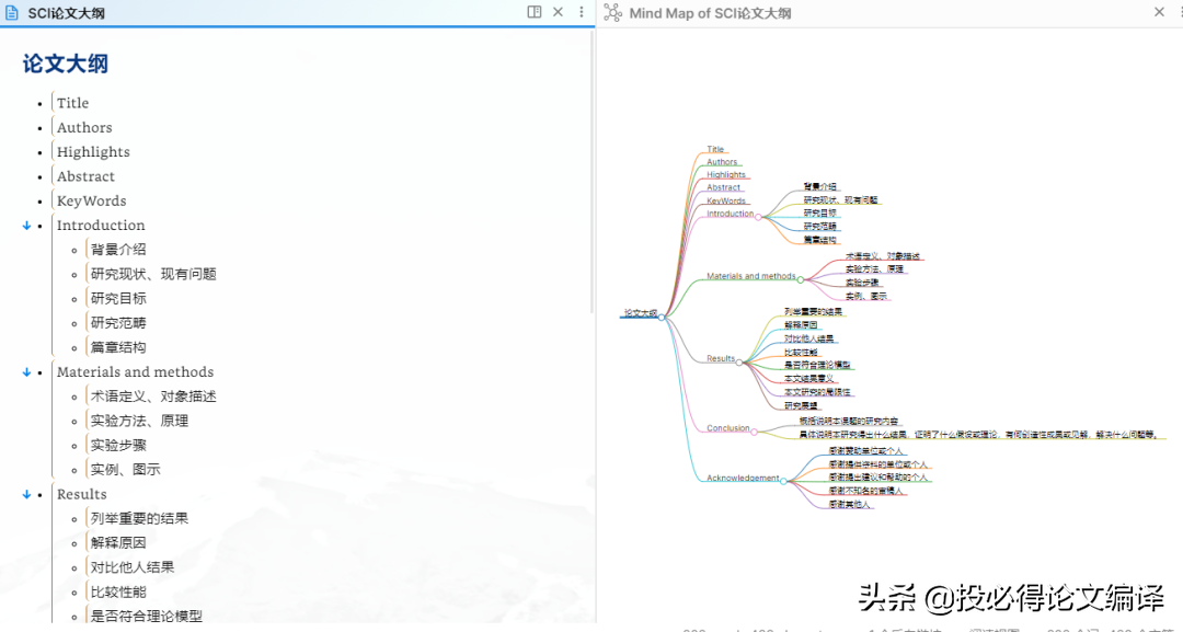 绘制思维导图就是写大纲笔记。如果你写论文,那么可以用思维导图制作大纲笔记。将思维导图打开为Markdown文件,此时的思维导图就是可以一个文本形式了,我们可以直接在该文本上撰写文字,适用于论文,非常好用。