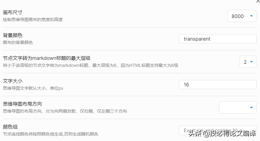 安装了Mindmap插件以后,我们就可以在【插件选项】看到【Mindmap】的设置页面了,如下图所示。这里都是一些显示效果的设置,可以不用管。