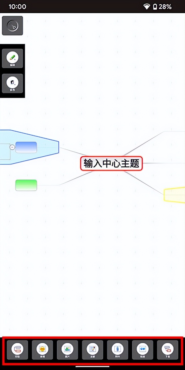 4、来到创建思维导图界面后,下方是一些工具,大家根据需求使用即可