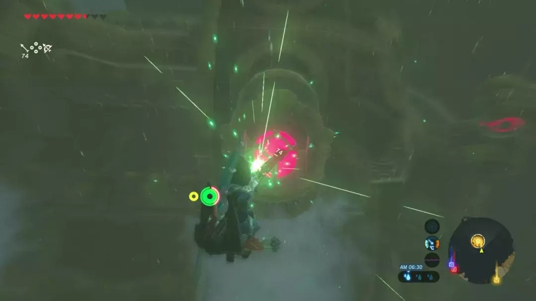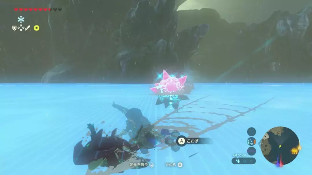 在打至一半血时,水ガノン会召水令场上只剩四个站台,自己亦会吊在空中。此时使用弓箭射击其蓝色眼睛,两至三次就能够把它击落及出现大硬直。