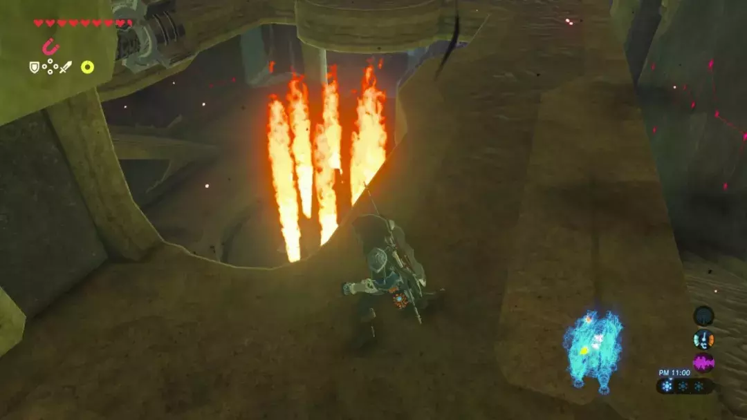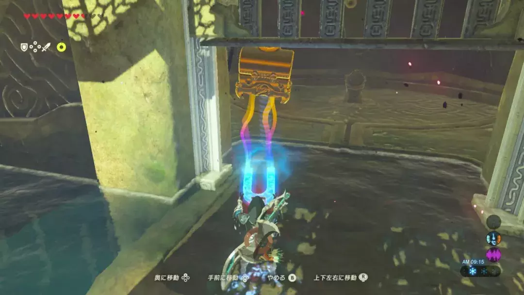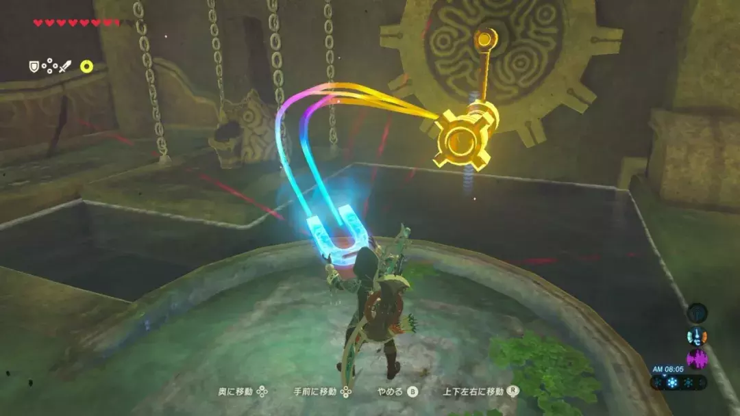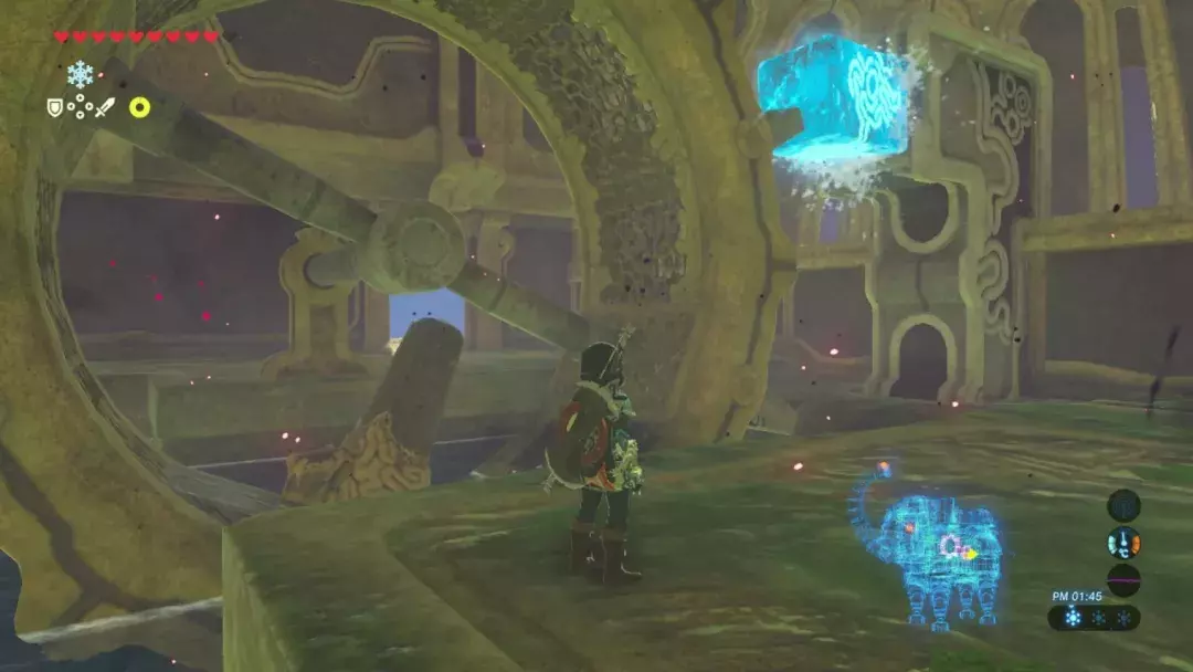 首先使用磁力从水底抽起一个宝箱,然后使用它就可以顶住闸门并拉上去,在内取得地图及ルッタ的象鼻控制权。