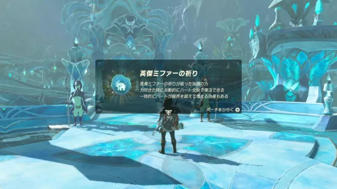 攻略完神兽后可取得「英杰ミファーの祈り」,在死亡时能自动复活及全回血。