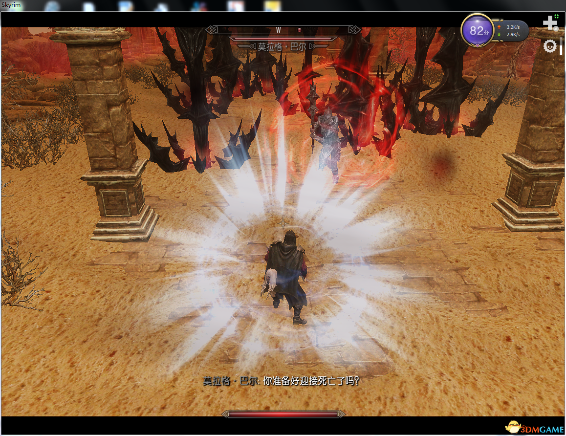 在0.35版本里面,莫拉格·巴尔出场就会出红晕盾,靠近有伤害,但我回血比他伤血还要快......毕竟全身顶级附魔了,我是二神,不是三神,不想用代码作弊调炼金素材所以炼金只有91级(前90级去训练师哪里买,91是看了本炼金书)然后其他技能全都练到了100级......