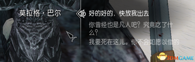 而在莫拉格·巴尔本源世界中,第二个回忆点马尔库之忆里面,如果选择正确,假扮成无名吟游诗人骸骨的莫拉格·巴尔就会现身,此时抓根宝可以向他询问:你曾经也是凡人,究竟吃了什么?