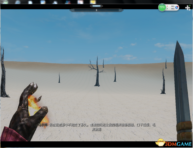 一进来我们....啊不,是马尔库就在沙漠里迷路了,看对话已经迷路大半天了.....(PS:聪明的人都不会在烈日当头是前进,除非你有大量补给,遇难者最好多看中午烈日不然不用半天就缺水休克,然后被太阳活活晒死......)