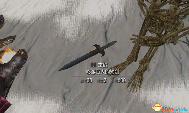 无名死(诗)人旁边是他的佩剑:吟游诗人的短剑。