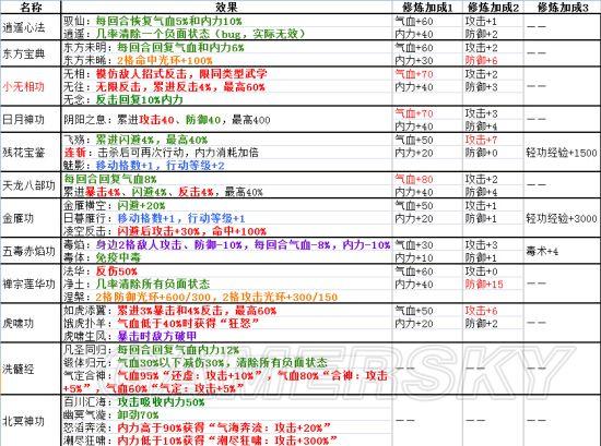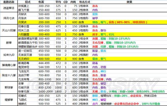 【内功及武功套路一览】