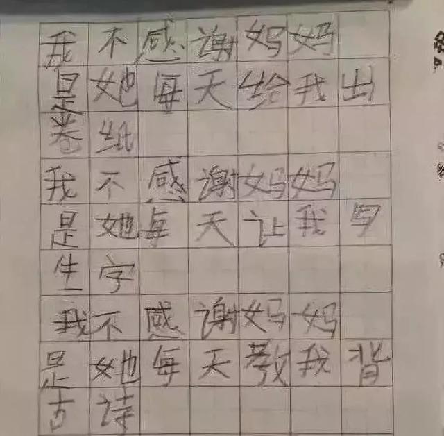 这是一个6岁男孩写的诗火了,诗题目叫《我不感谢妈妈》。