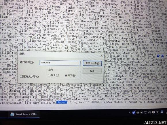 物品数量:按ctrl+F打开搜索功能,输入iamount,如图上显示的iamount后面的数字是物品数量,然后后面有itemid,我没去研究具体itemid对应的东西,反正全部改成99就对了