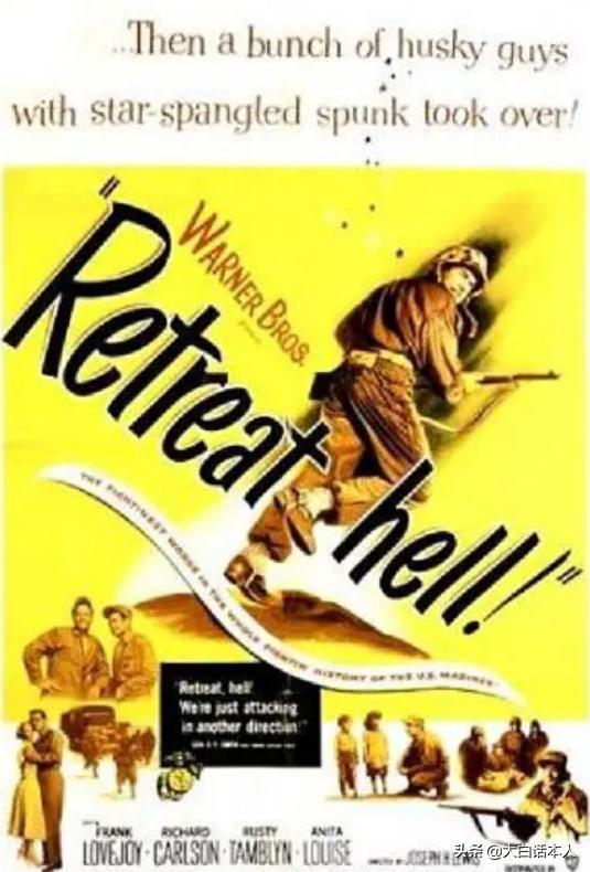 这个世界上第一部关于长津湖的电影,叫做《决不撤退》。这部电影拍摄于1952年,当时朝鲜战争还没结束,美国人就已经迫不及待拍电影美化自已了!