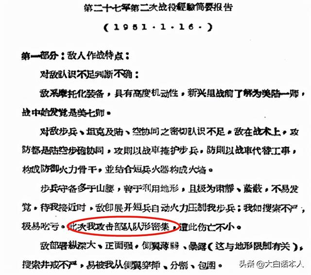 从现有资料来看,由于长津湖战役是9兵团第一次正面硬刚美军最精锐部队,因此沿用了解放战争中打国军美械部队的战术。攻击部队在进攻中队形密集,蒙受了不小的伤亡。27军在进攻新兴里时,部队在狭窄的正面上组成两个攻击方向,最大限度集中兵力多梯队发起冲锋,结果在接敌过程中遭到非常猛烈的火力杀伤。