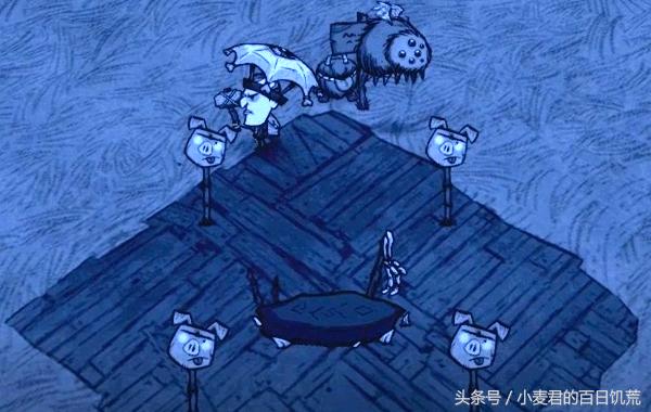 另外,月相盘还可以用来照明。没有玩过这个游戏的小伙伴可能不清楚黑夜是多么可怕,以及我们对光明是多么渴望。月相盘当然不会一直发光,朔月这天的月相盘就完全是黑乎乎的,就如同当天的夜晚,很黑很黑。不过从新月(朔月)直到满月的过程中,月相盘会越来越亮,直到满月当天,月相盘亮得仿佛是要溢出水来。寒来暑往,日出日落,月盈月亏,正是这些精心打造的细节构成了《饥荒》这个精彩纷呈的古怪世界,倘若这个古怪的世界里也有中秋节,小麦君倒希望能制作个月饼吃吃。好了,下面的时间交给在座的小可爱们自由发挥。