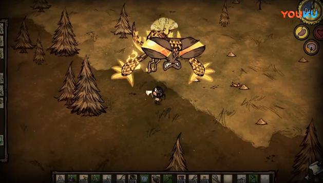 在游戏过程中不难发现,原本单调的资源获得过程成为了一场可能性的冒险,甚至外出拾粪都显得乐趣十足。以猪皮为例,玩家可以消耗珍贵的装备正面肛掉一个猪人村庄,也可以寻找废弃的猪人小屋或复活祭坛,用锤子砸掉建筑获得素材,更可以在猪人村旁边种下蜘蛛卵,静待长成的蜘蛛和猪人,然后坐收渔翁之利。特定的资源只会在特定的地形出现,集全道具和建筑并不是一件容易的事情。