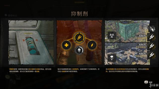只是拿到技能点就可以升级么?并不,游戏中所有的技能都有一定的属性要求,需要玩家的生命值或体力值到达一定数值后才可解锁,然而升级并不能会提升这些属性,所以怎么做才可以提升角色的属性值呢?答案是——收集抑制剂。