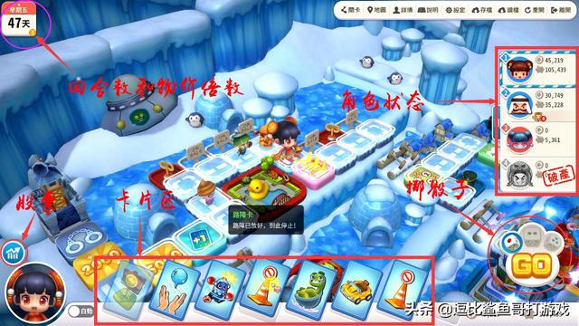 进入关卡后,来到游戏的棋盘,棋盘上的元素很多,对于第一次玩《大富翁》的玩家来讲肯定容易眼花缭乱。但我们不难发现,只要光标指向了某个道具、物体或地皮,上面都会有详细的说明。