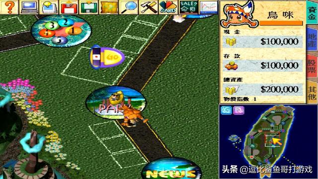 而在《大富翁4》中,最小的地图是宝岛。在这张地图中,玩家不仅没法一眼望完,而且医院和监狱还单独设置了两个小岛连接到大岛,保守估计其尺寸也是迪拜地图的1.5~2倍大。