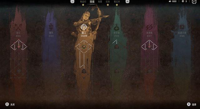 比起1代技能树只有潜入特化的潜行者系、射箭特化的勇者系和觅食者系(各种杂项),《西之绝境》的流派更加丰富,也不只是射箭一家独大。