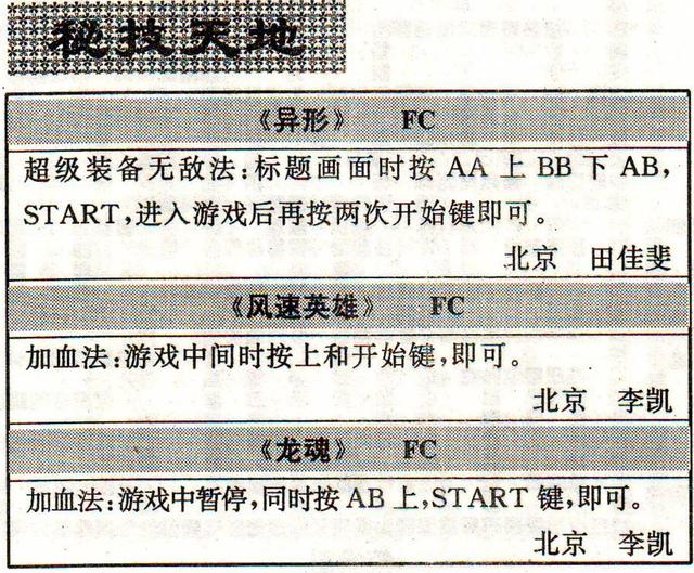 九十年代初期,国内的杂志都还没有开始流行,玩家想要得到这些秘籍的话,要么能玩到正版卡带,要么就是能看到国外杂志。