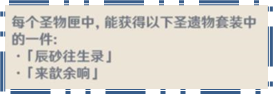 4月1日深境螺旋重置后,深境螺旋9-12层奖励「深秘圣物匣·一等」、「深秘圣物匣·二等」中的圣遗物套装「角斗士的终幕礼」和「流浪大地的乐团」,将替换为「辰砂往生录」和「来歆余响」