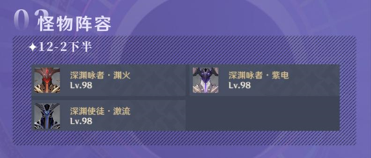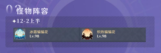 1.这次问题最大的便是12-2的下半,伤害高同时对于元素搭配的要求也十分的高!建议队伍同时带上水元素角色,火元素角色和冰元素角色(这样以来12-3下半直接利用冰元素角色破盾即可),12-3上半也需要水元素角色,请注意!