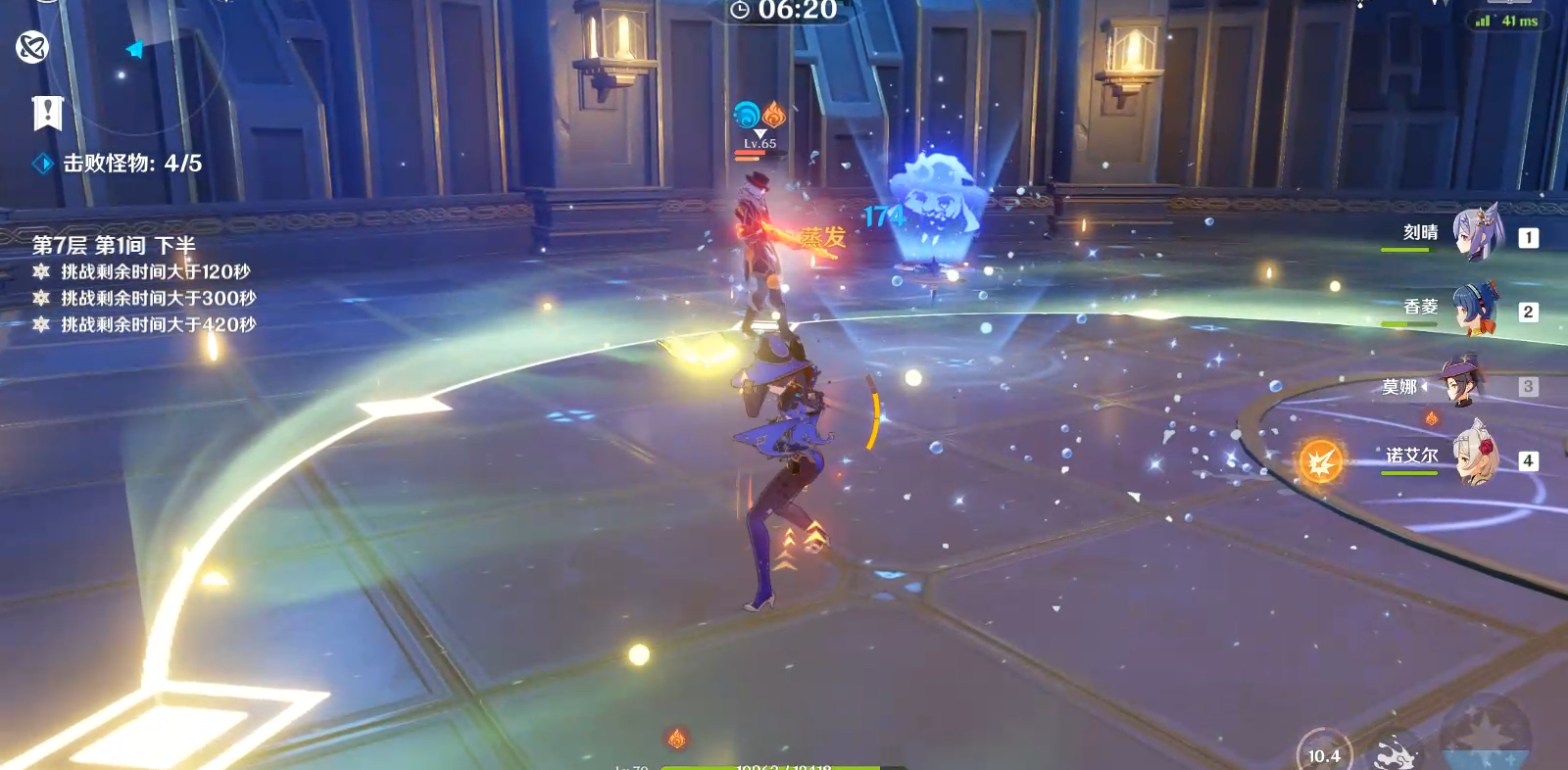 当你选好了克制对方护盾的阵容,并对其技能有相应的了解,那么第七层的整体难度将会被大大降低。在本层的作战中旅行者需善用无敌帧,如若不然雷锤/风拳的蓄力技能很容易就会秒杀上场的角色,在没有满命芭芭拉和七七的情况下会很难办。